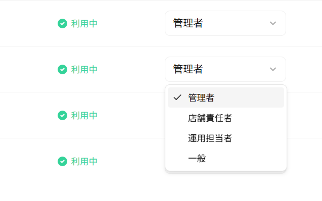 - 招待者のログインが完了すると、権限の変更ができるようになります。(※招待されたスタッフがログイン設定を完了するまでは権限変更できません。)