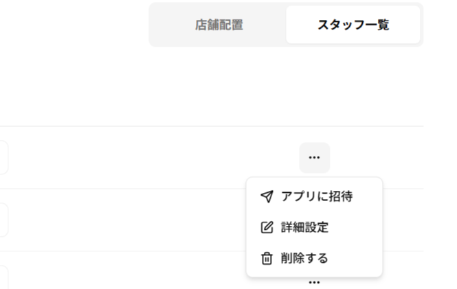 次に招待したいスタッフ欄の右手にある【…】ボタンから「アプリに招待」をお選び下さい。