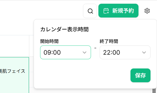 予約表画面の右上の【⚙️】ボタンからカレンダー表示時間の選択画面が表示されます。